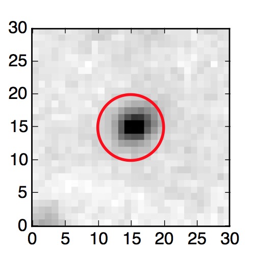 The red circle in the various panels is 1" in radius. The images are 6"x6".
