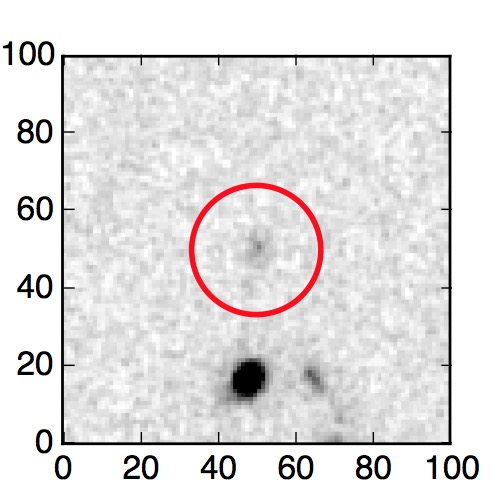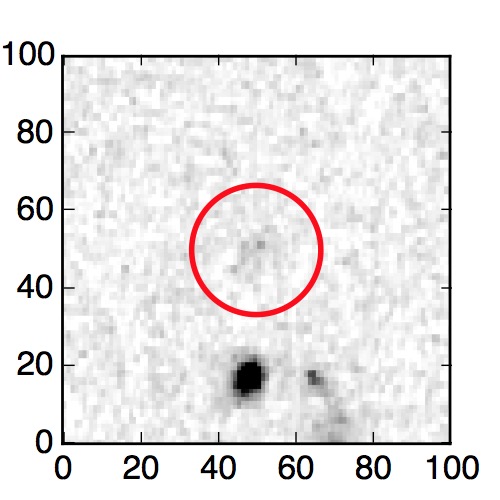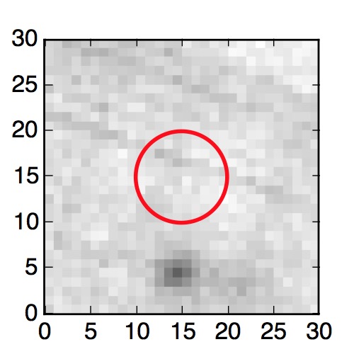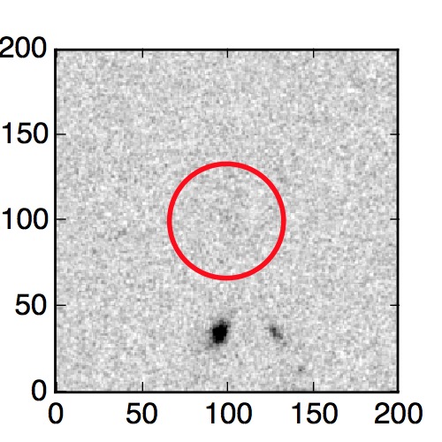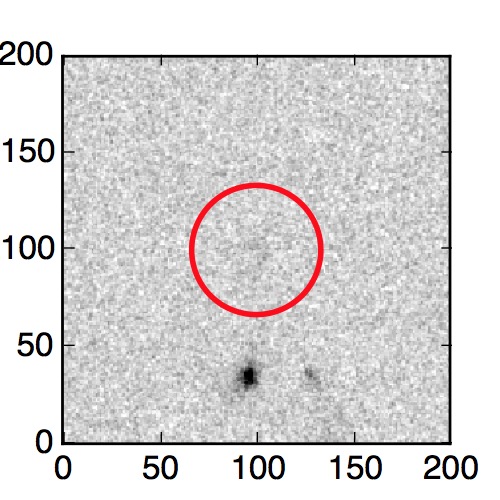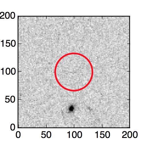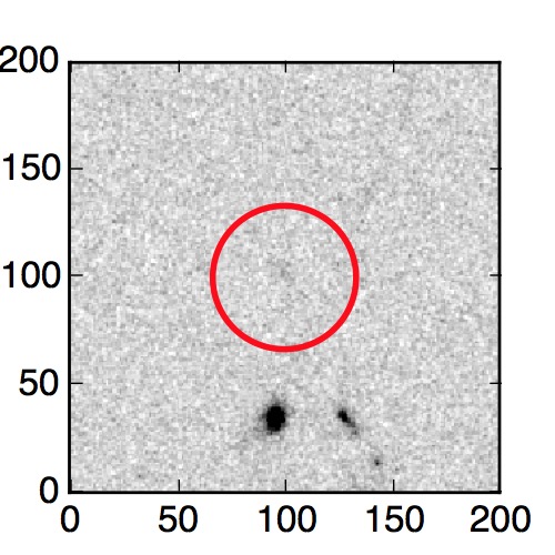 The red circle in the various panels is 1" in radius. The images are 6"x6".