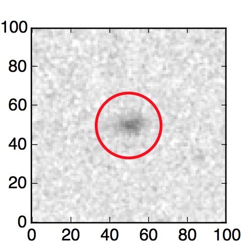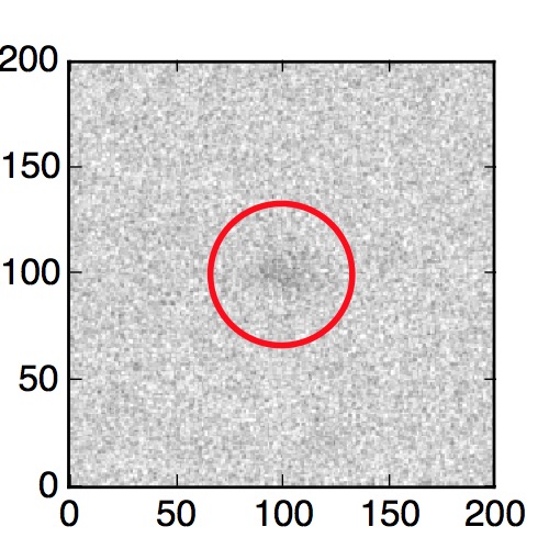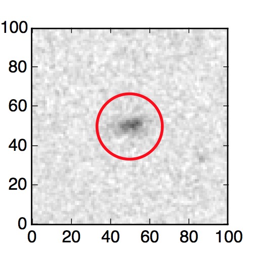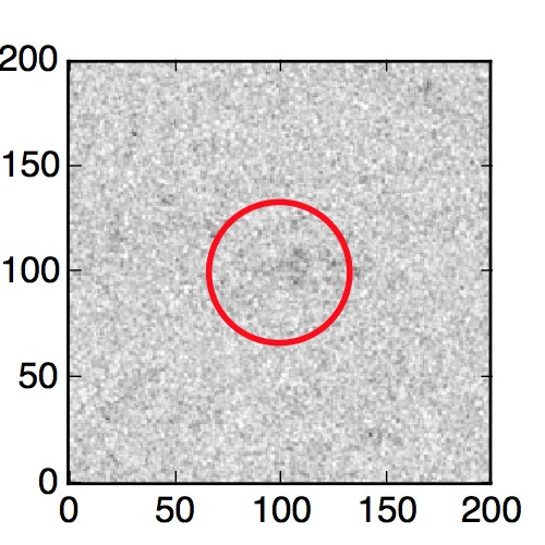 The red circle in the various panels is 1" in radius. The images are 6"x6".