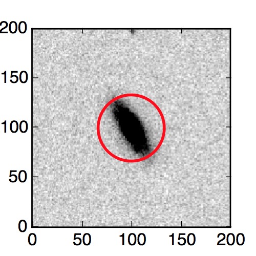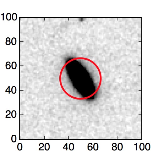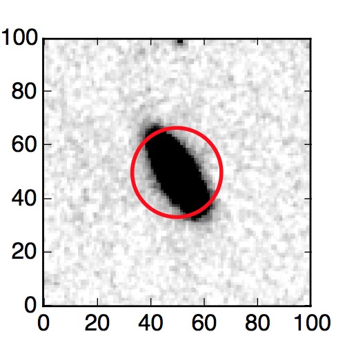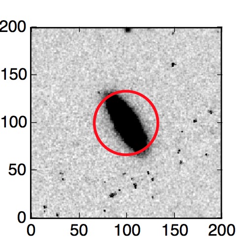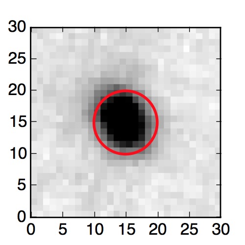 The red circle in the various panels is 1" in radius. The images are 6"x6".