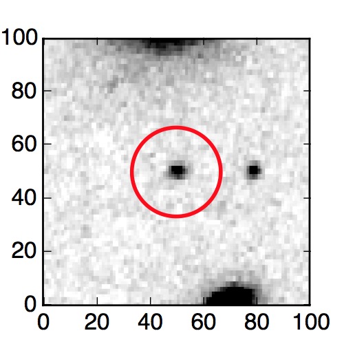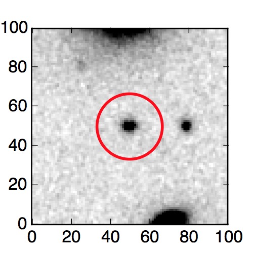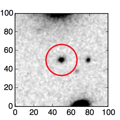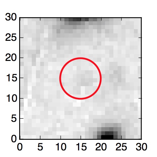 The red circle in the various panels is 1" in radius. The images are 6"x6".
