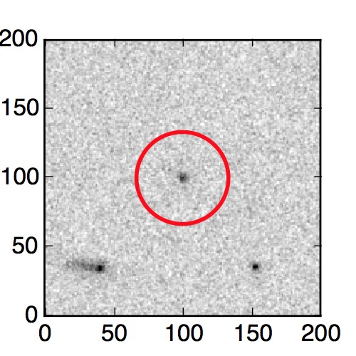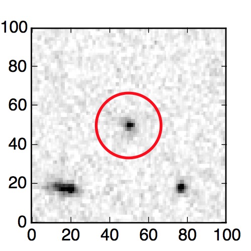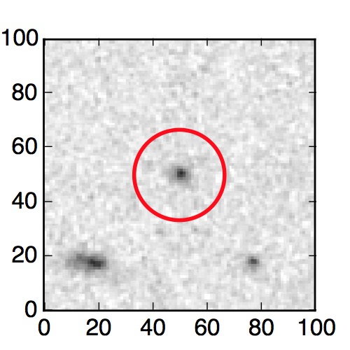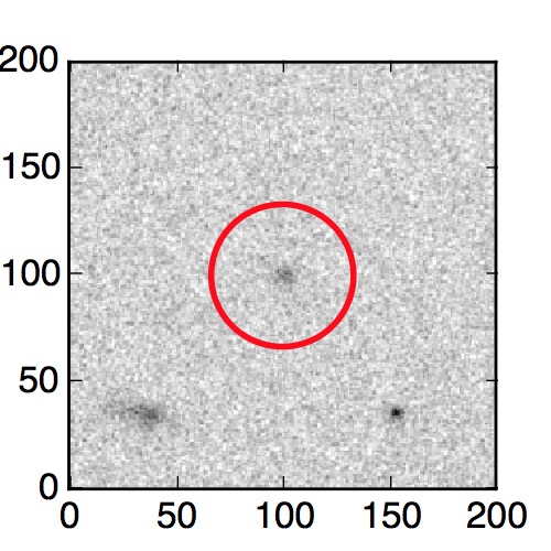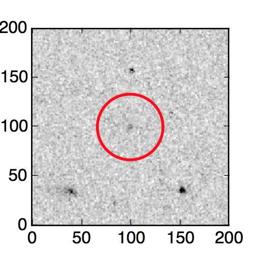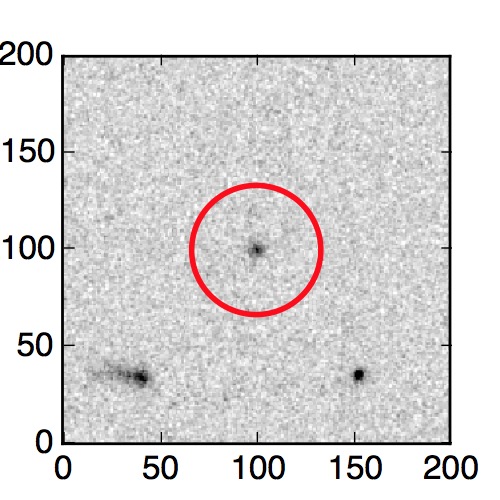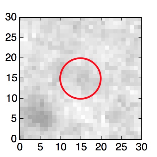 The red circle in the various panels is 1" in radius. The images are 6"x6".