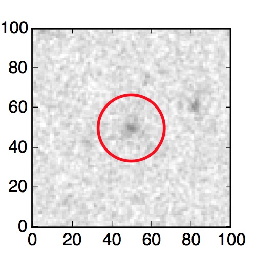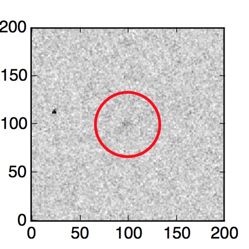 The red circle in the various panels is 1" in radius. The images are 6"x6".