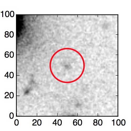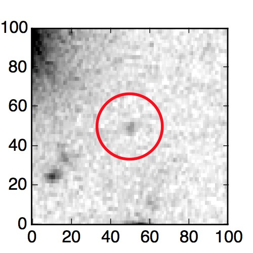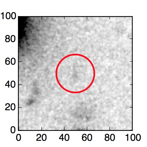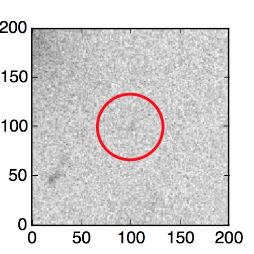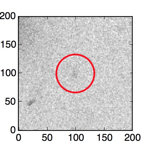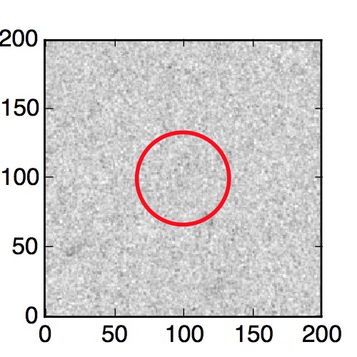The red circle in the various panels is 1" in radius. The images are 6"x6".