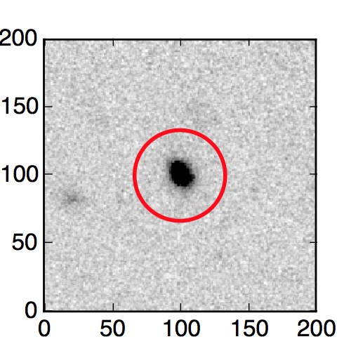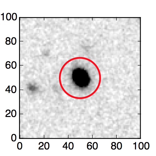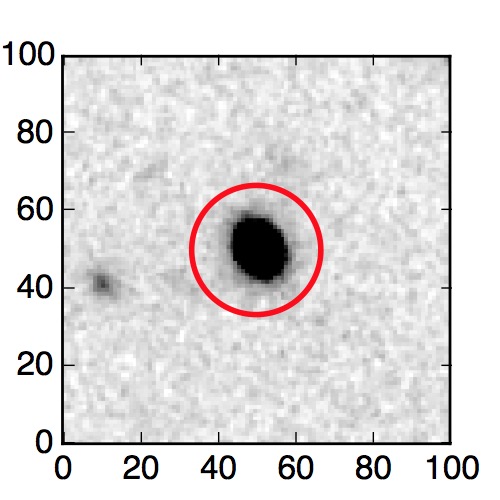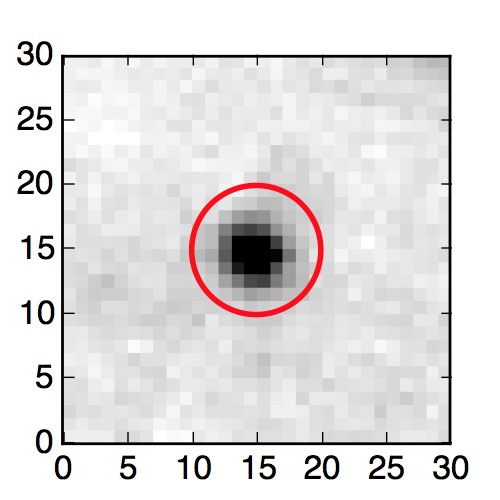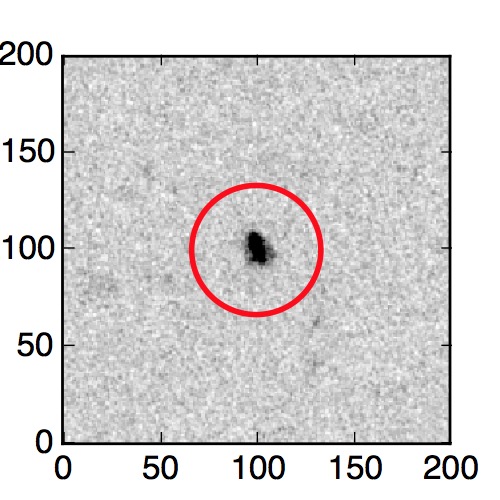 The red circle in the various panels is 1" in radius. The images are 6"x6".