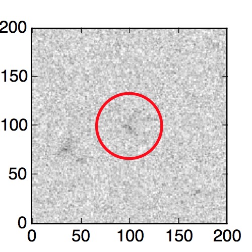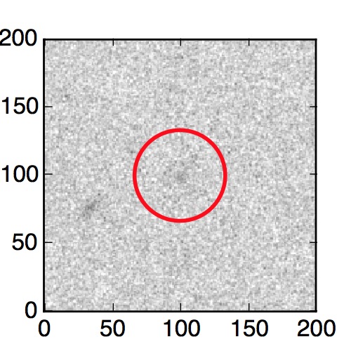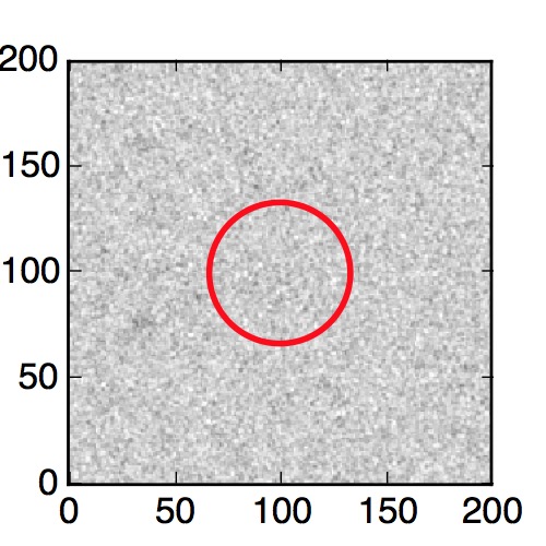 The red circle in the various panels is 1" in radius. The images are 6"x6".