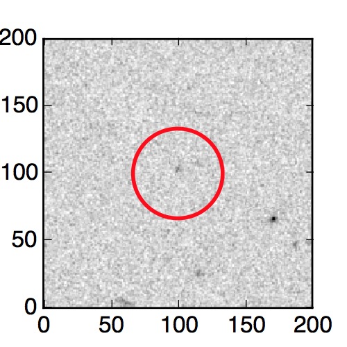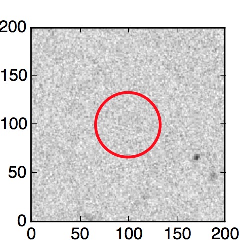 The red circle in the various panels is 1" in radius. The images are 6"x6".