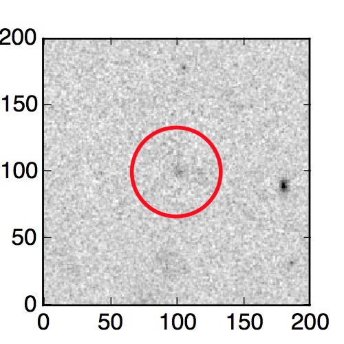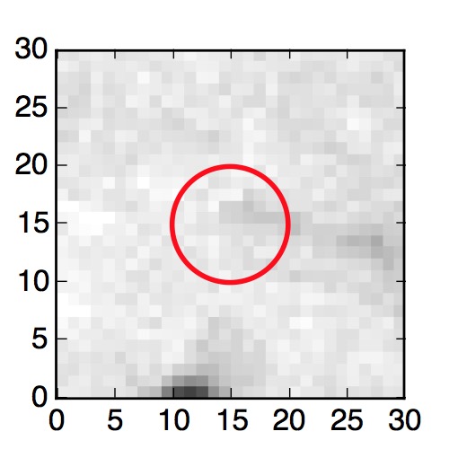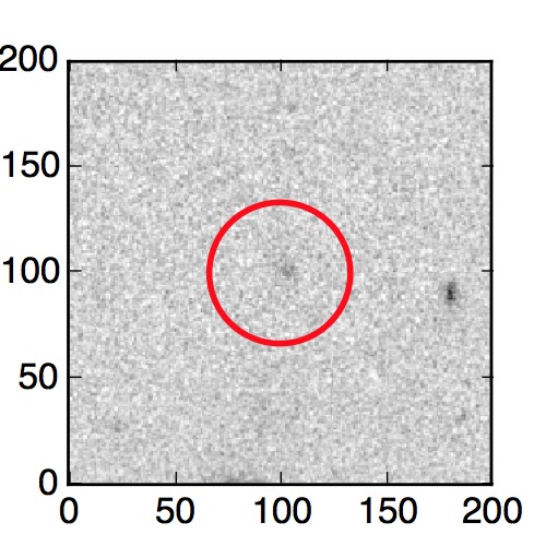 The red circle in the various panels is 1" in radius. The images are 6"x6".