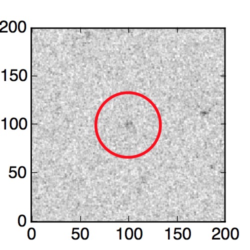 The red circle in the various panels is 1" in radius. The images are 6"x6".