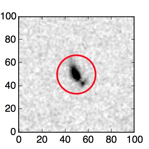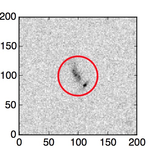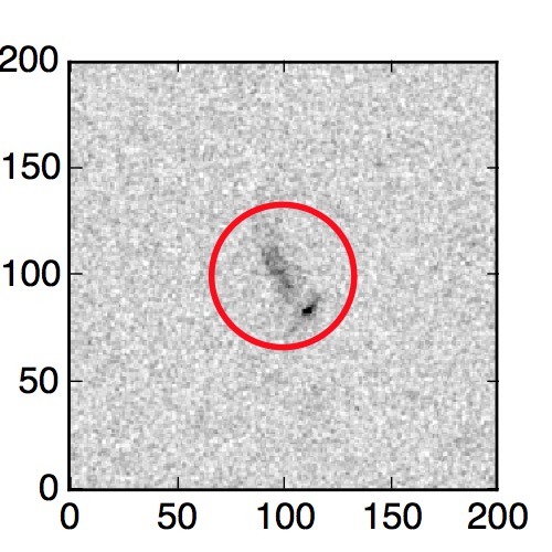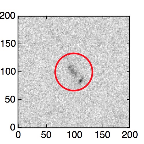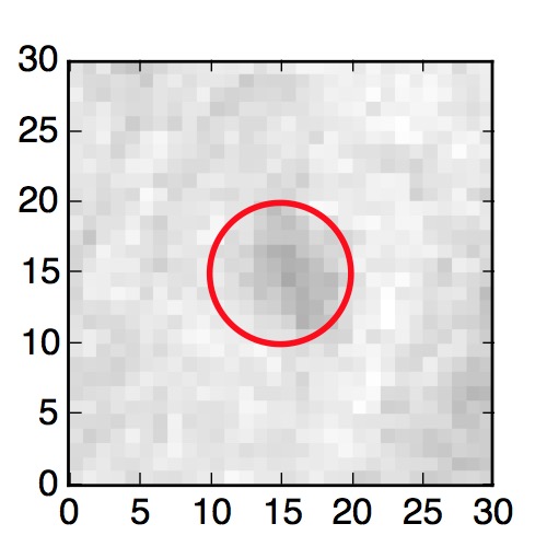 The red circle in the various panels is 1" in radius. The images are 6"x6".