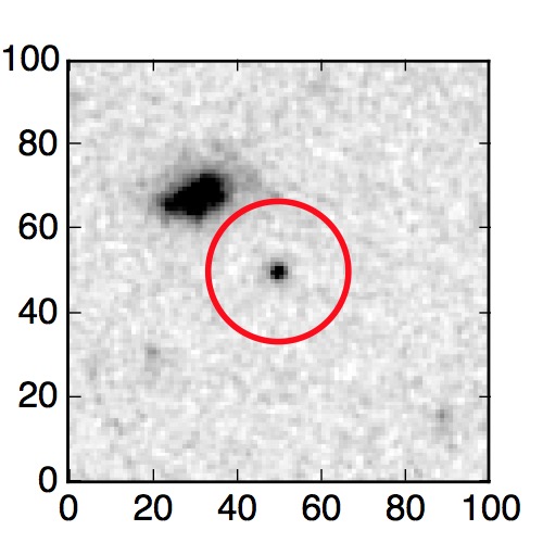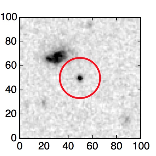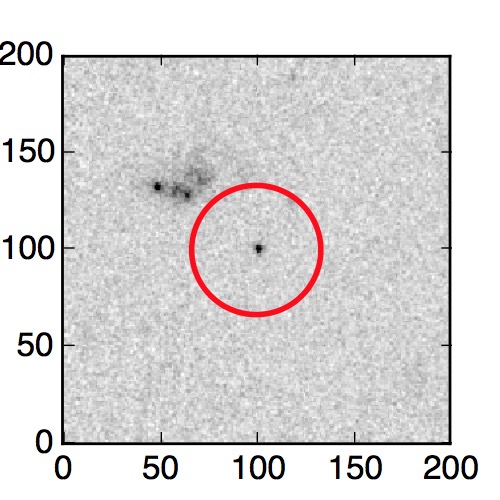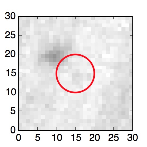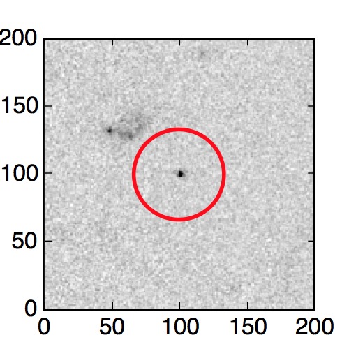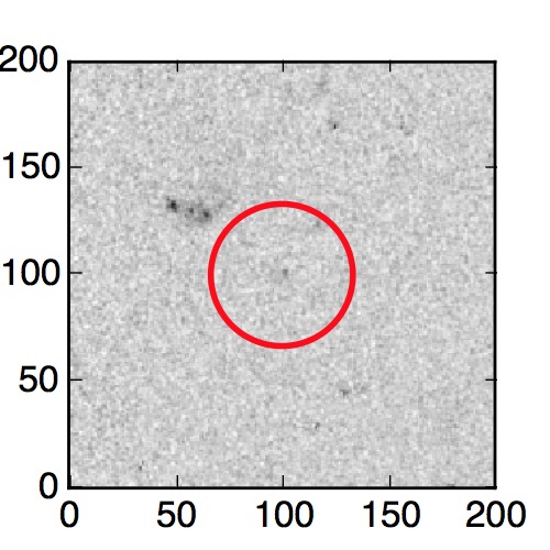 The red circle in the various panels is 1" in radius. The images are 6"x6".