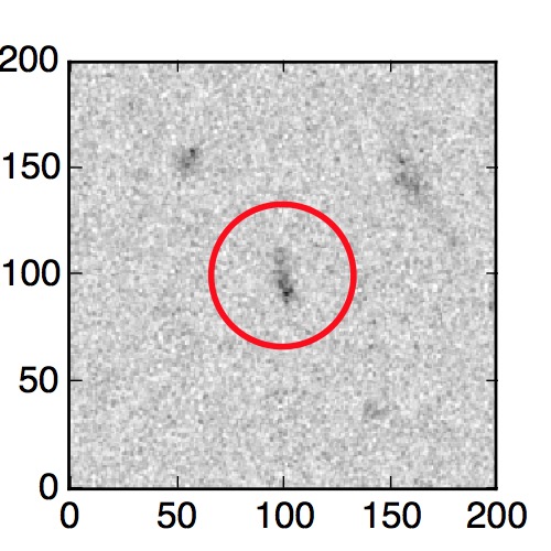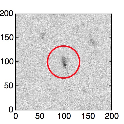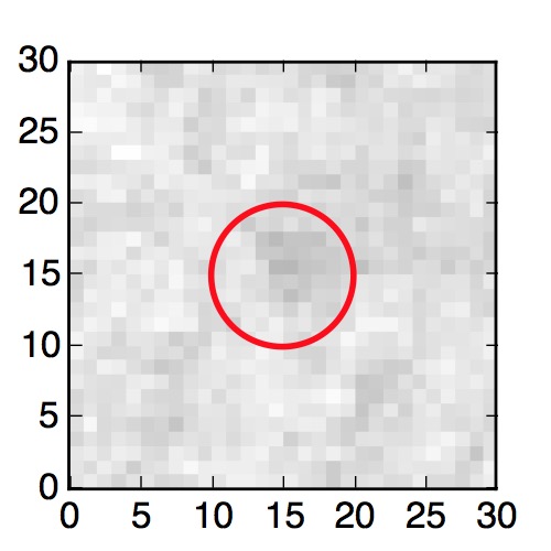 The red circle in the various panels is 1" in radius. The images are 6"x6".