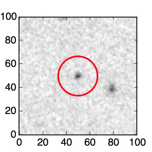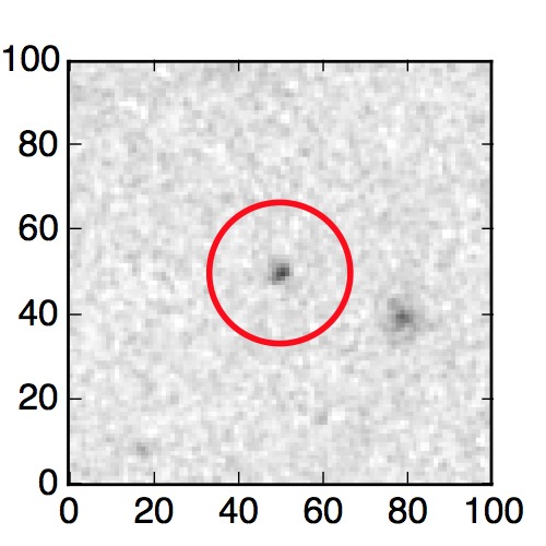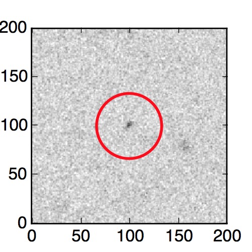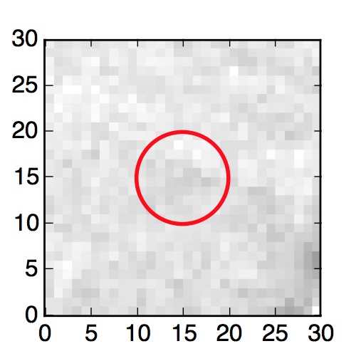 The red circle in the various panels is 1" in radius. The images are 6"x6".
