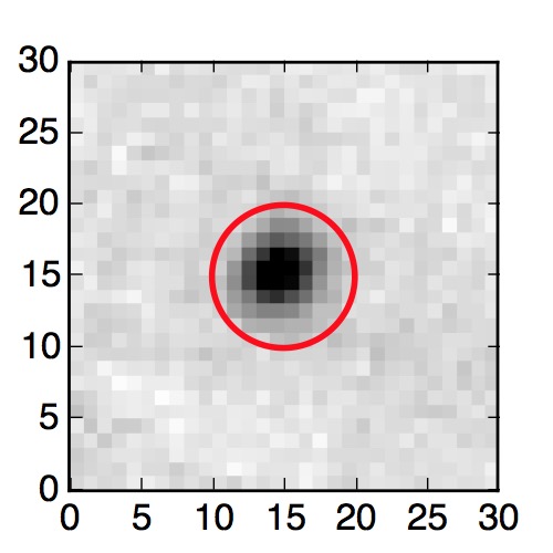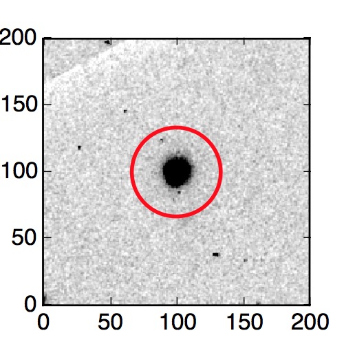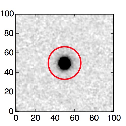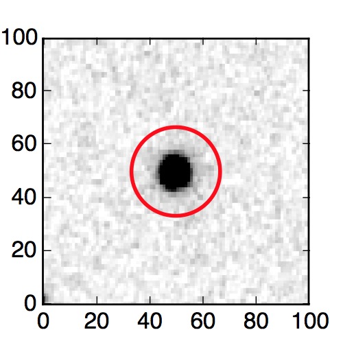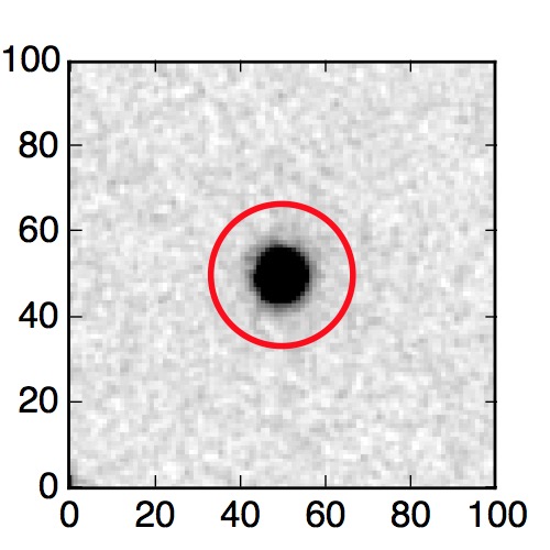 The red circle in the various panels is 1" in radius. The images are 6"x6".