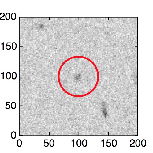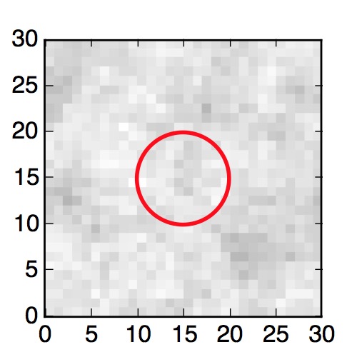The red circle in the various panels is 1" in radius. The images are 6"x6".