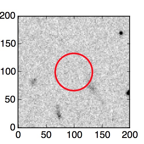 The red circle in the various panels is 1" in radius. The images are 6"x6".