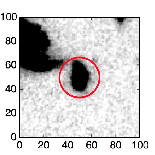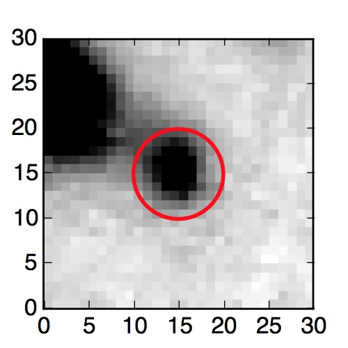 The red circle in the various panels is 1" in radius. The images are 6"x6".