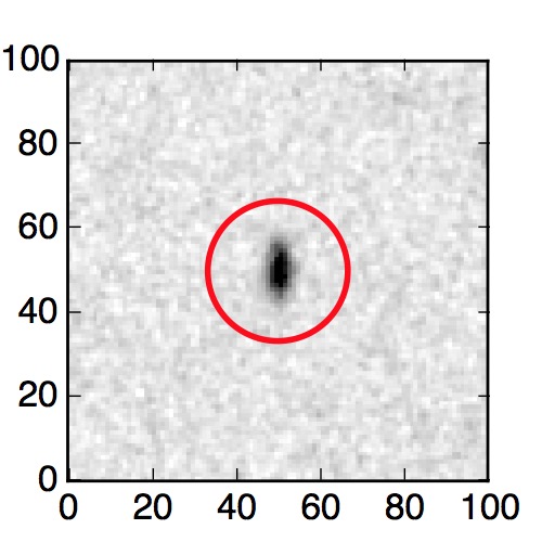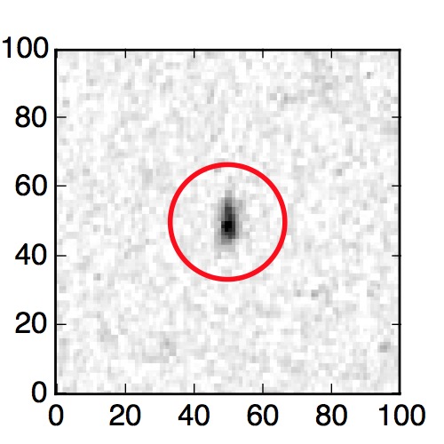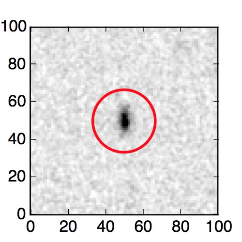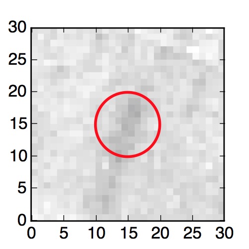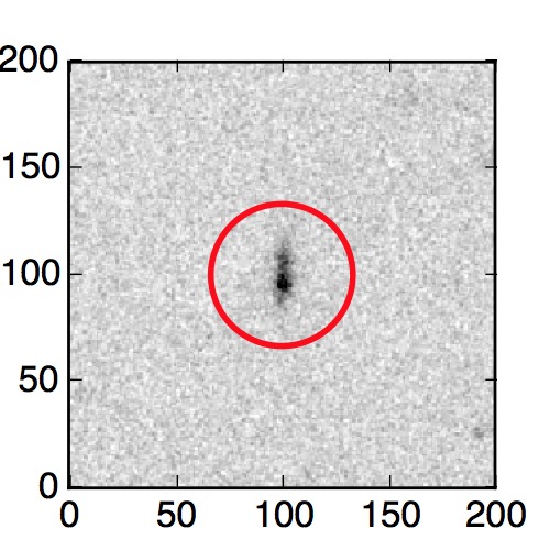 The red circle in the various panels is 1" in radius. The images are 6"x6".