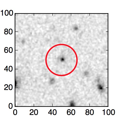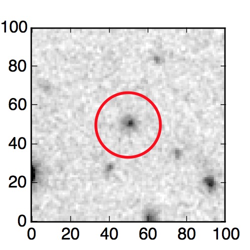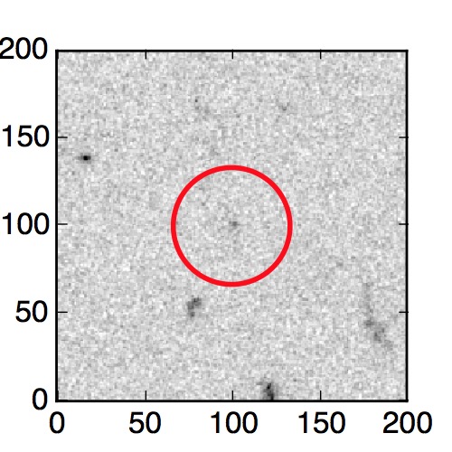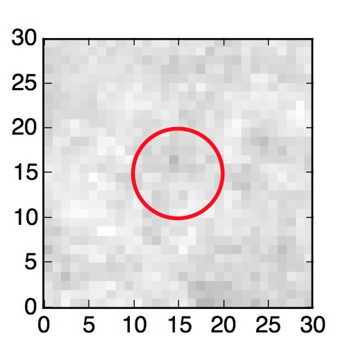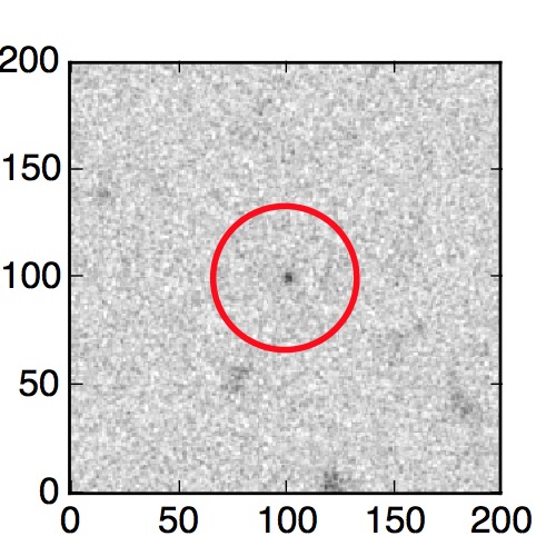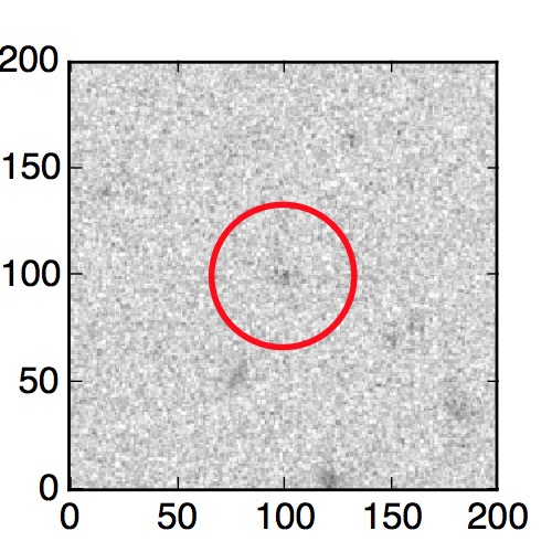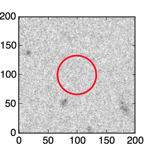 The red circle in the various panels is 1" in radius. The images are 6"x6".
