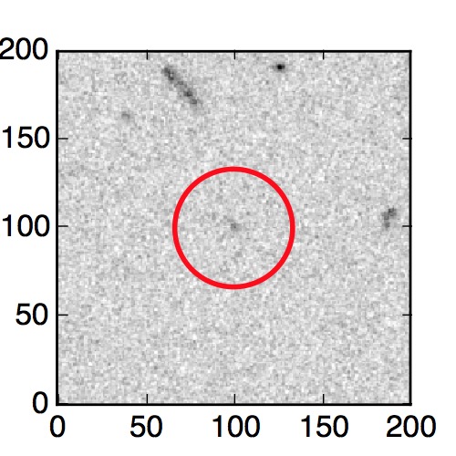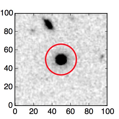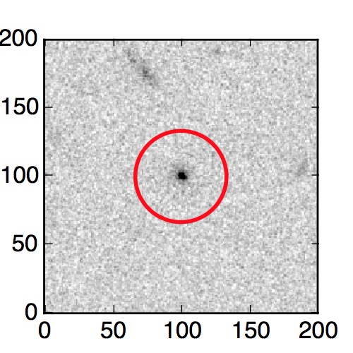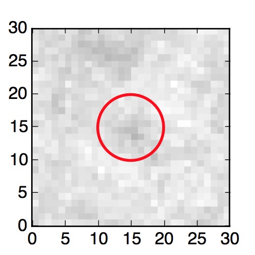 The red circle in the various panels is 1" in radius. The images are 6"x6".
