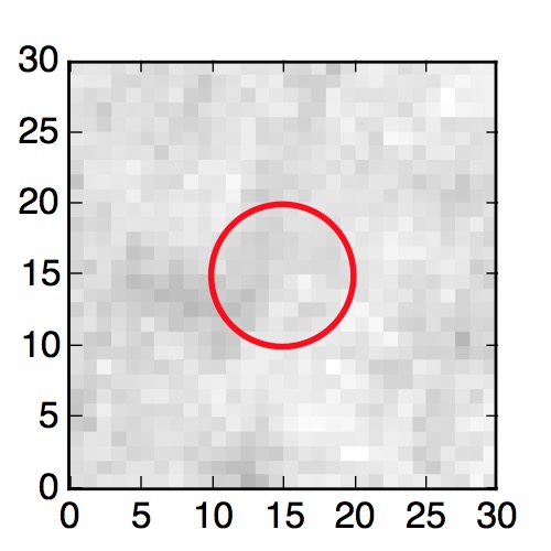 The red circle in the various panels is 1" in radius. The images are 6"x6".