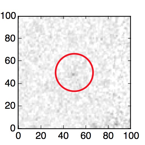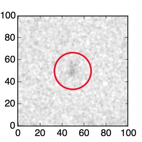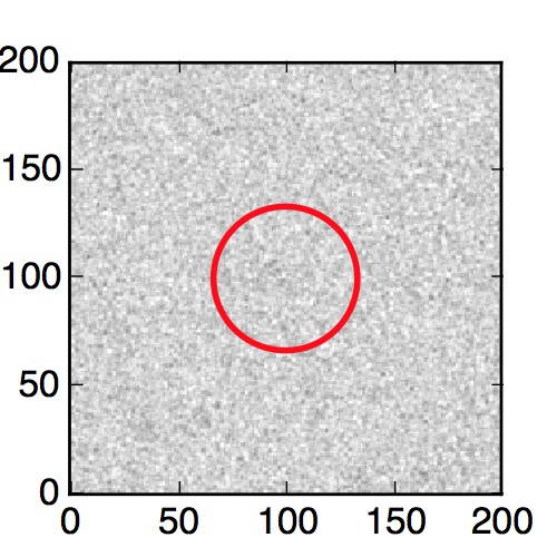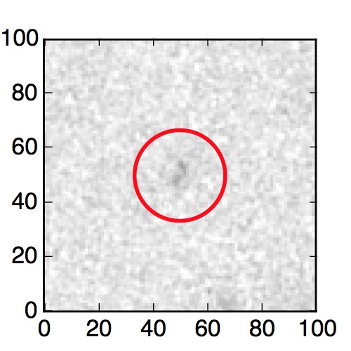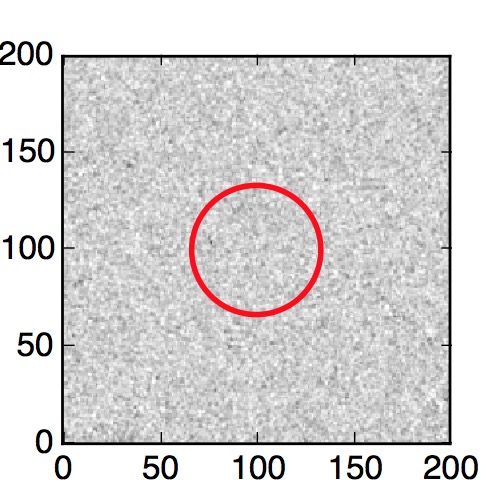 The red circle in the various panels is 1" in radius. The images are 6"x6".