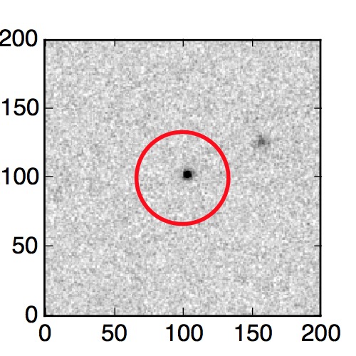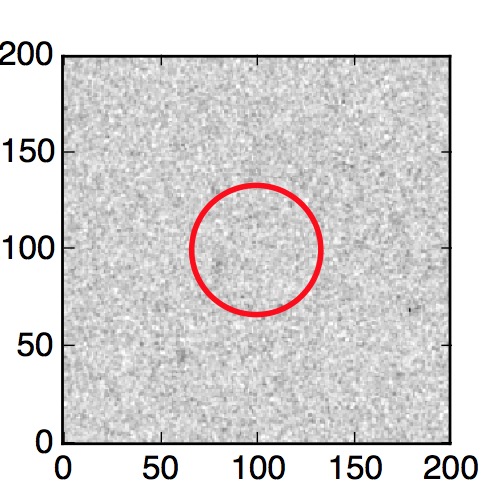 The red circle in the various panels is 1" in radius. The images are 6"x6".
