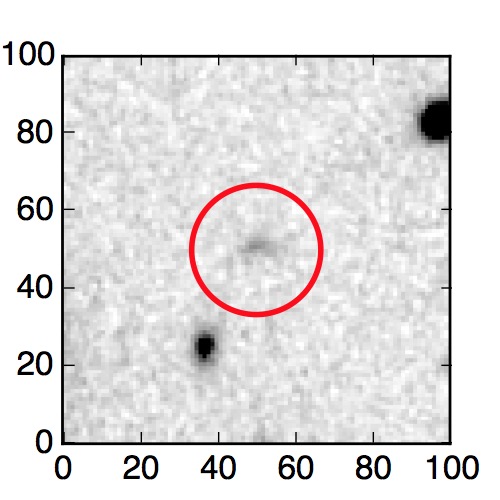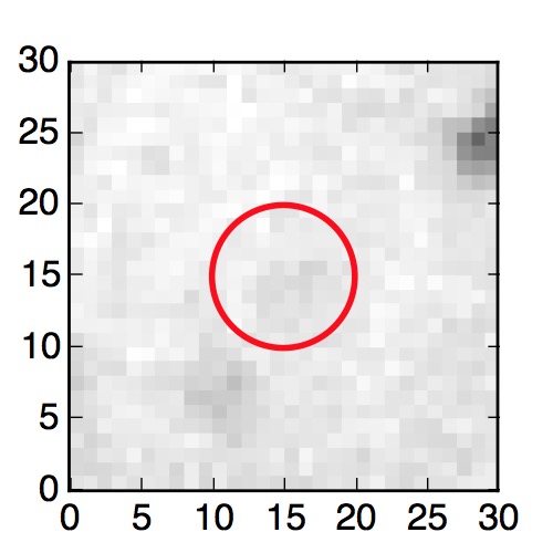 The red circle in the various panels is 1" in radius. The images are 6"x6".
