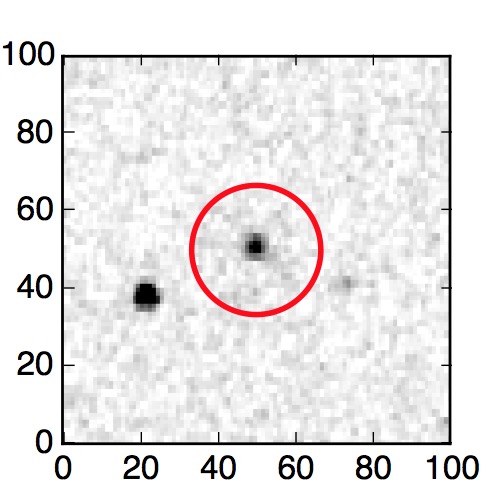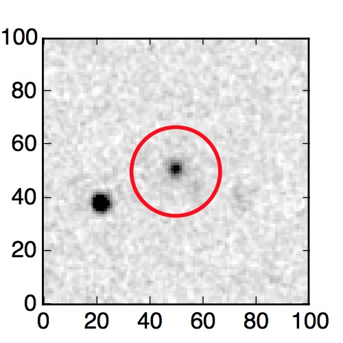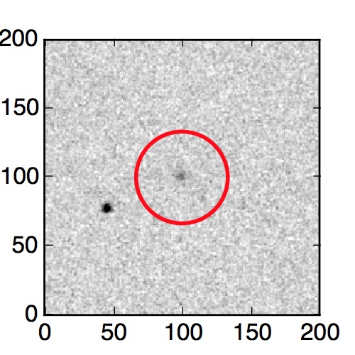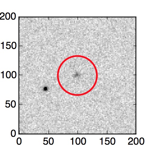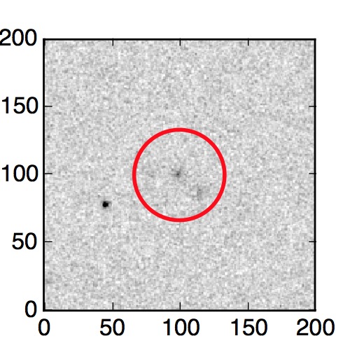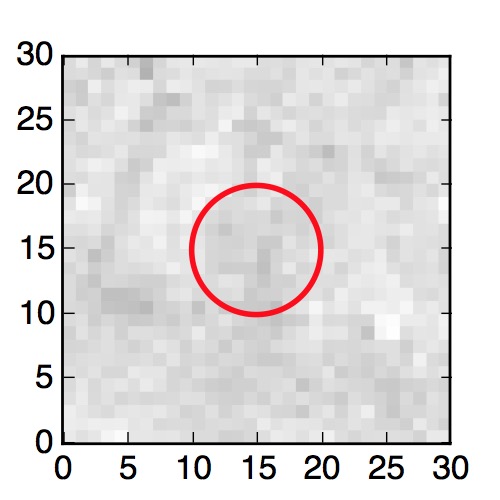 The red circle in the various panels is 1" in radius. The images are 6"x6".