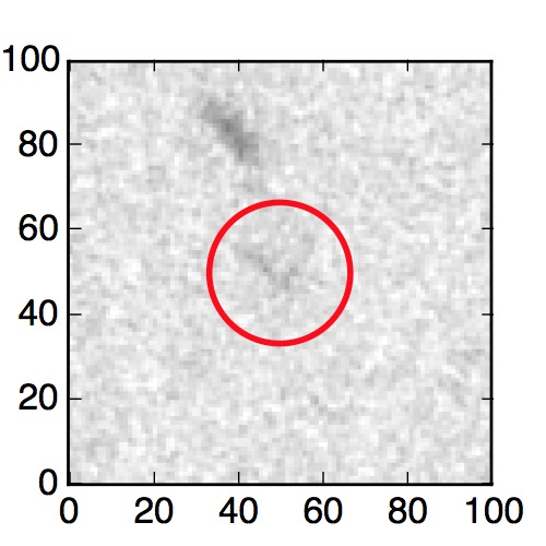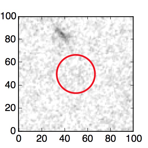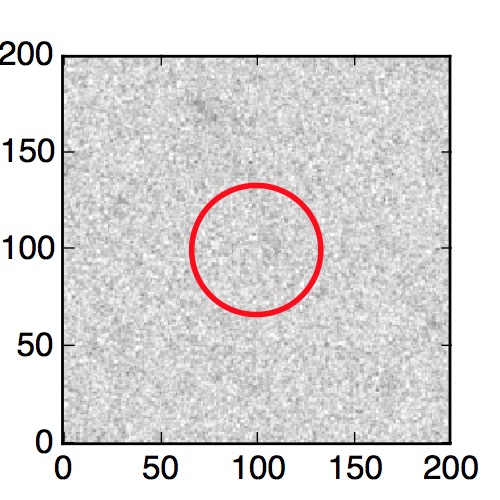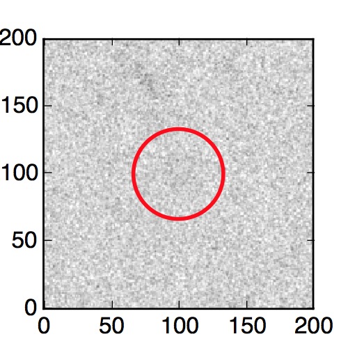 The red circle in the various panels is 1" in radius. The images are 6"x6".