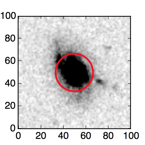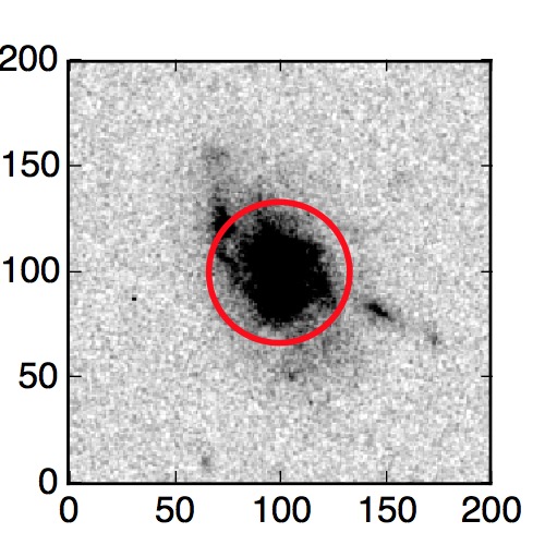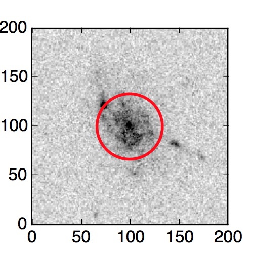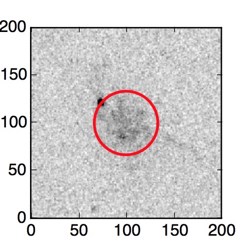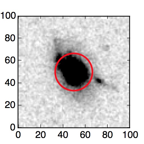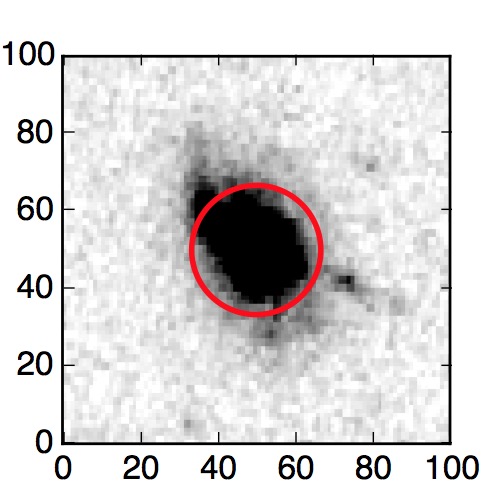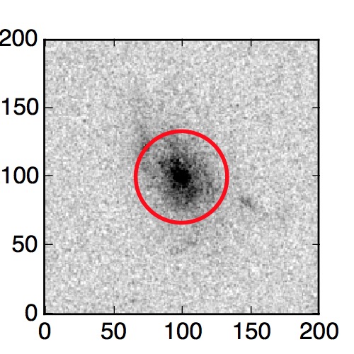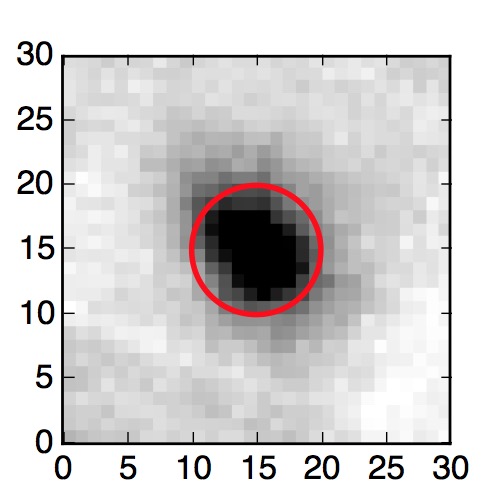 The red circle in the various panels is 1" in radius. The images are 6"x6".