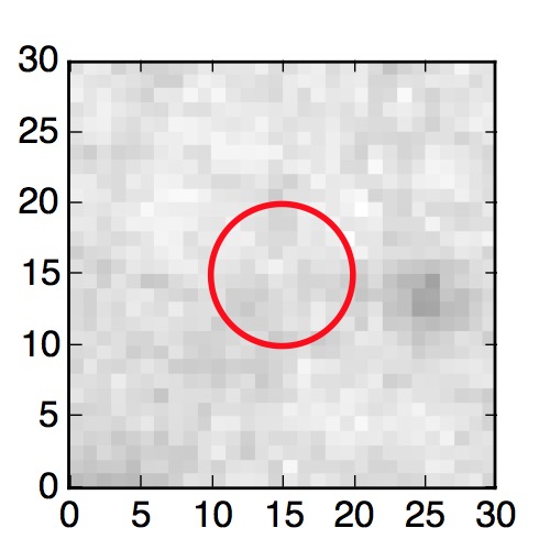 The red circle in the various panels is 1" in radius. The images are 6"x6".