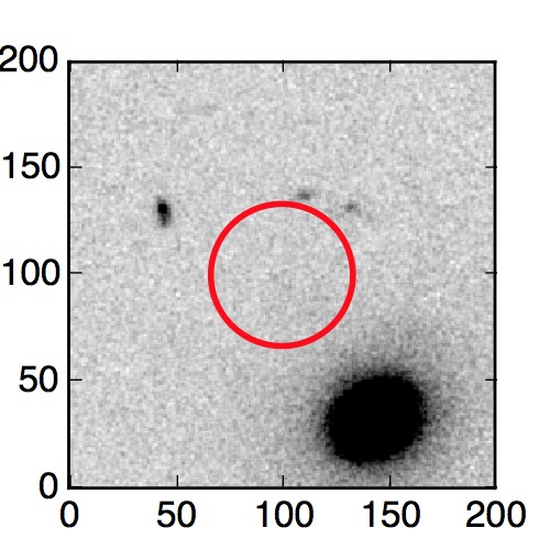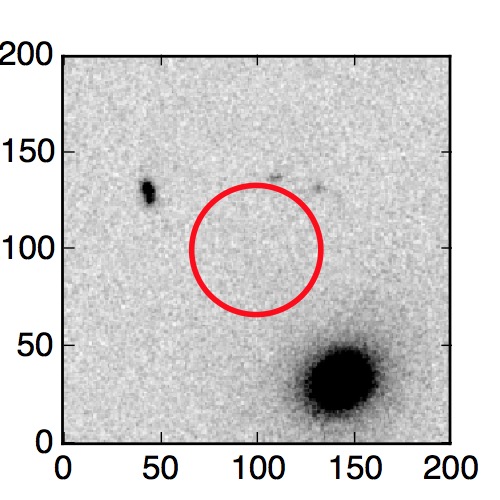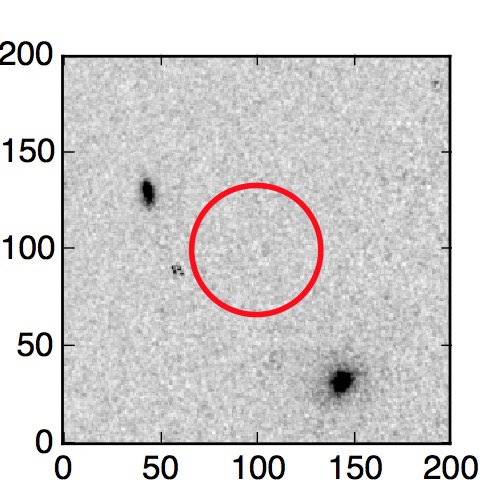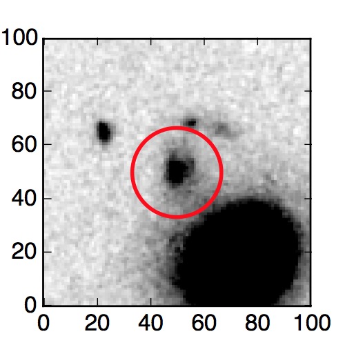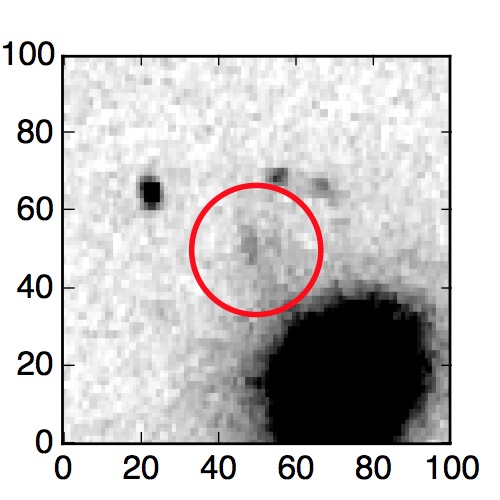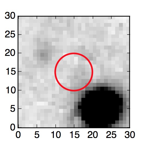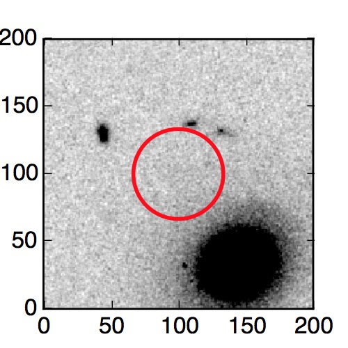 The red circle in the various panels is 1" in radius. The images are 6"x6".