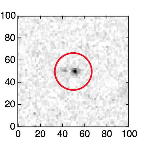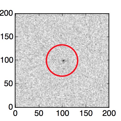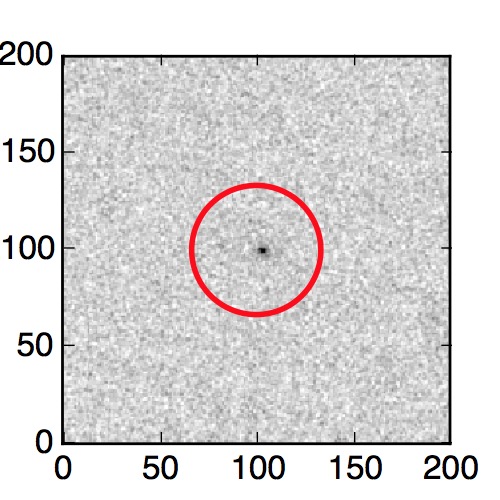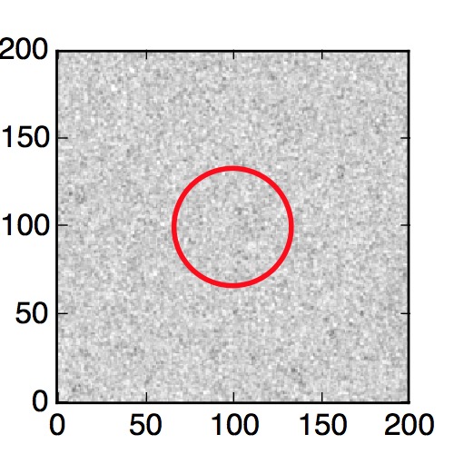 The red circle in the various panels is 1" in radius. The images are 6"x6".