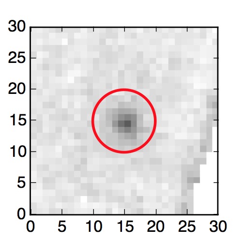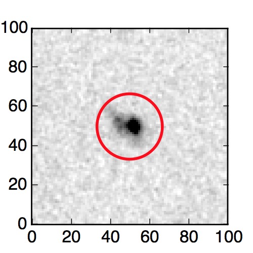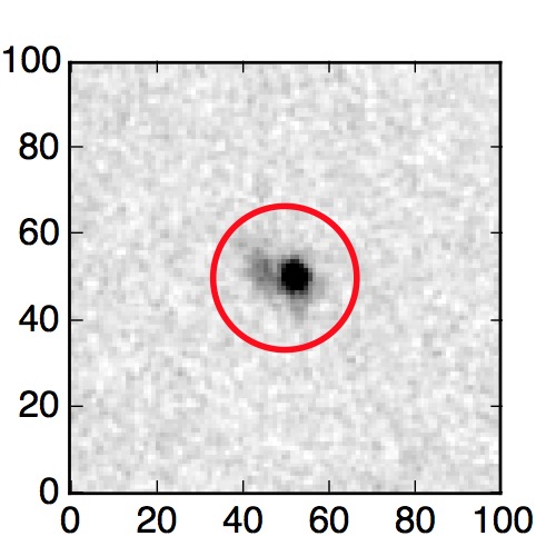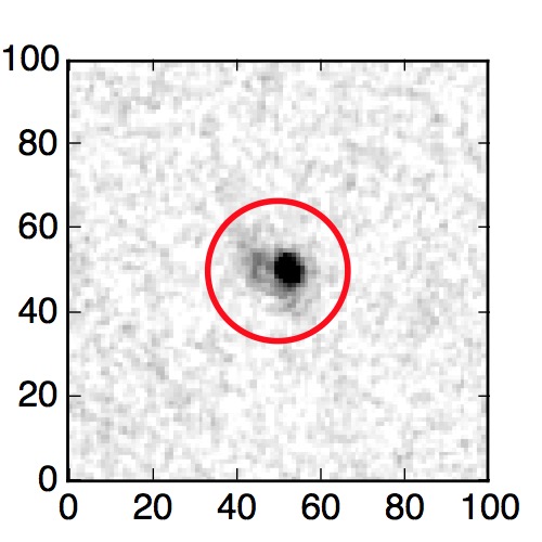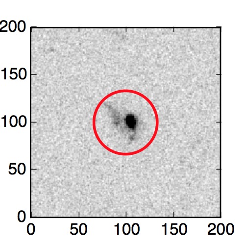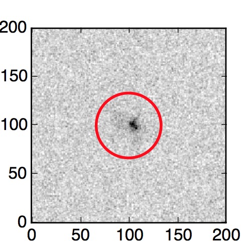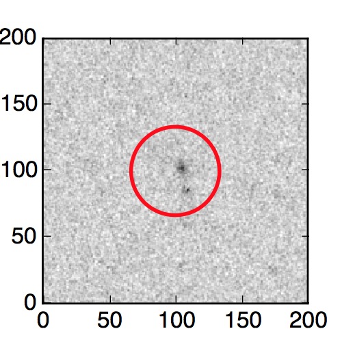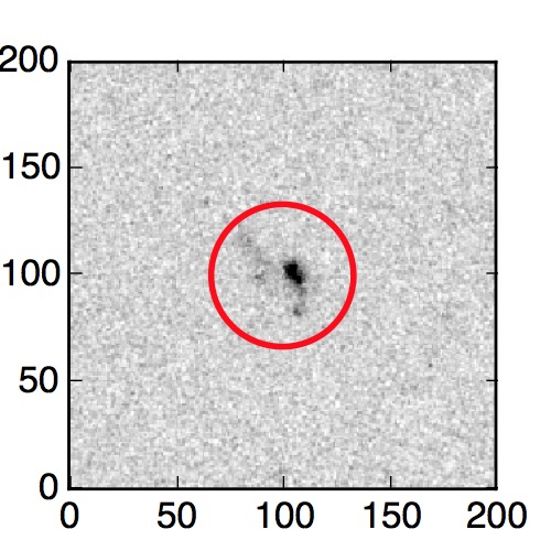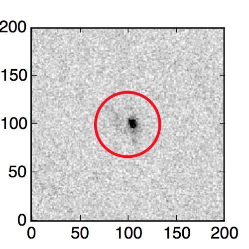 The red circle in the various panels is 1" in radius. The images are 6"x6".