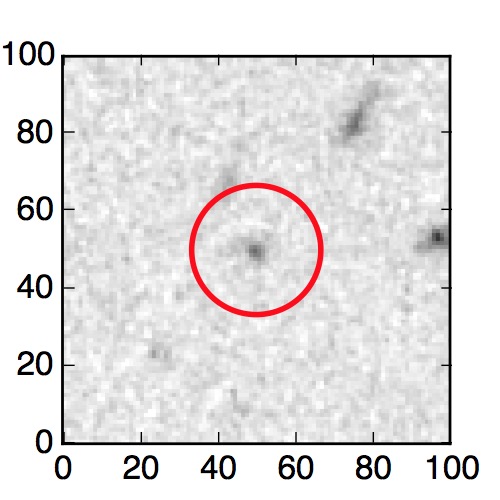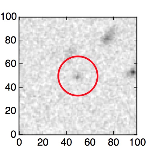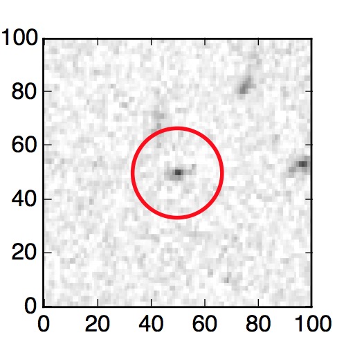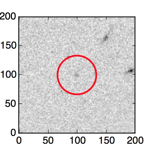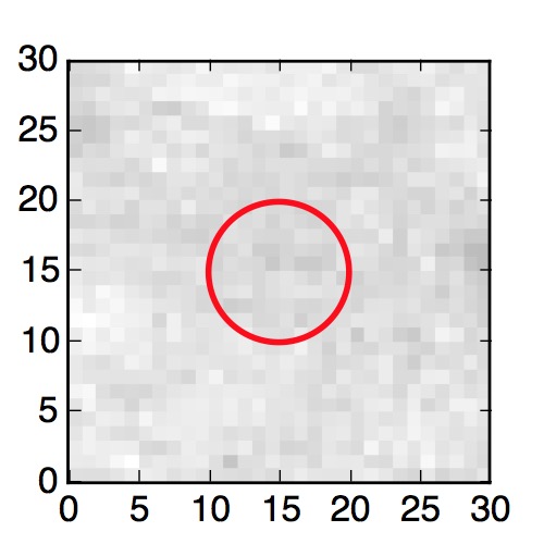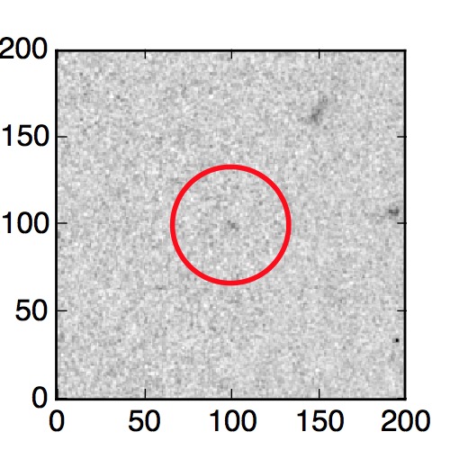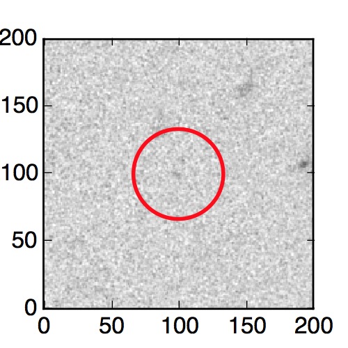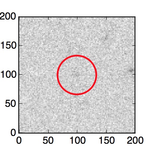 The red circle in the various panels is 1" in radius. The images are 6"x6".