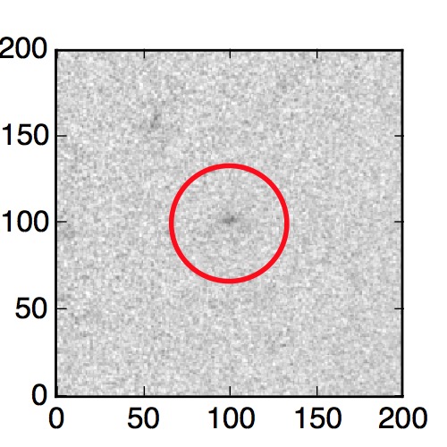 The red circle in the various panels is 1" in radius. The images are 6"x6".