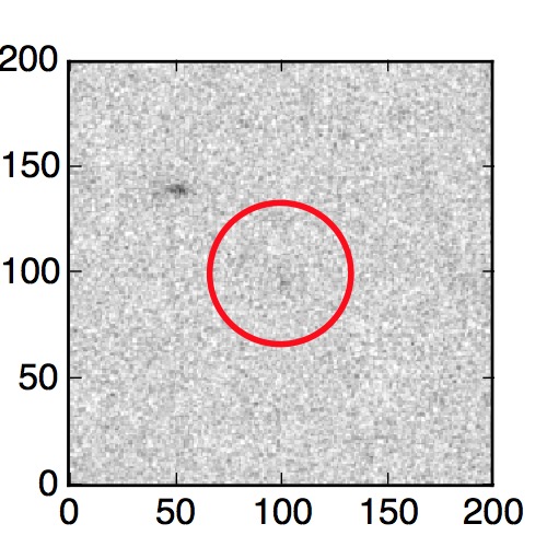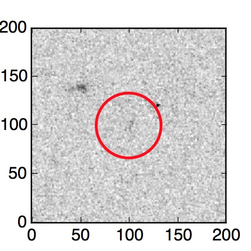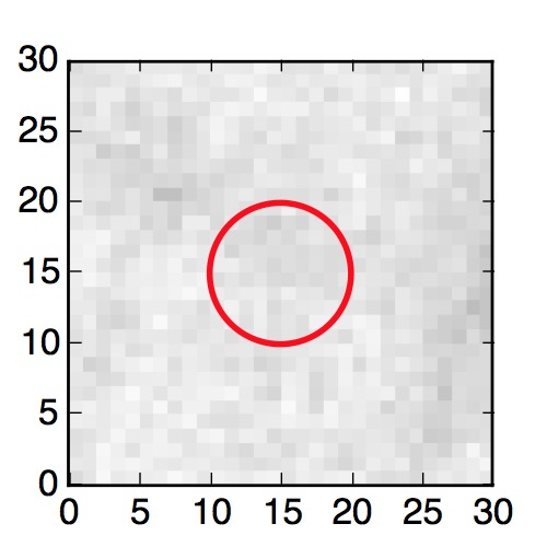 The red circle in the various panels is 1" in radius. The images are 6"x6".