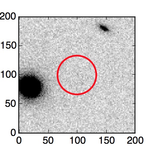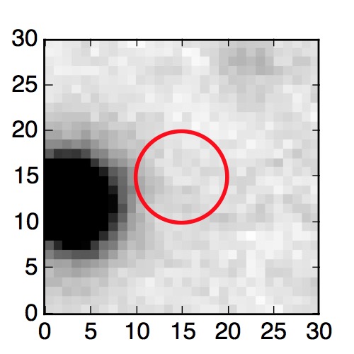 The red circle in the various panels is 1" in radius. The images are 6"x6".