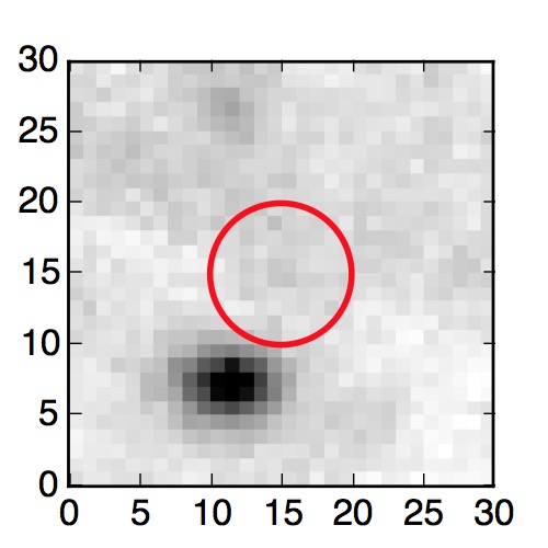 The red circle in the various panels is 1" in radius. The images are 6"x6".