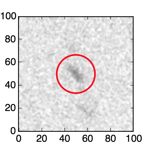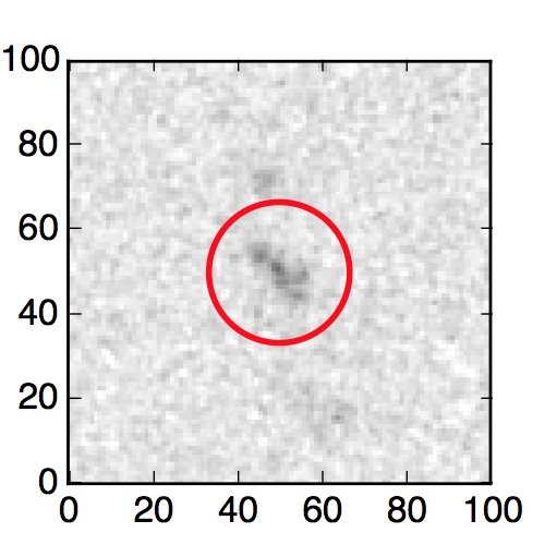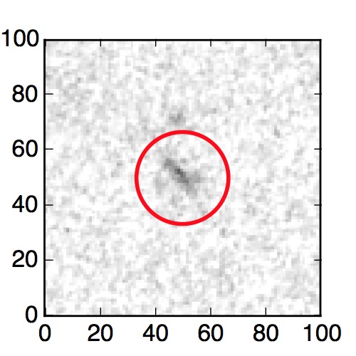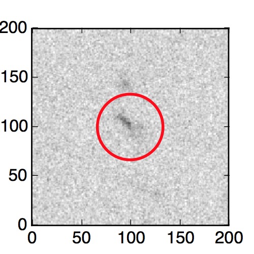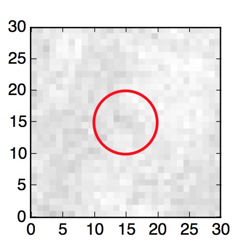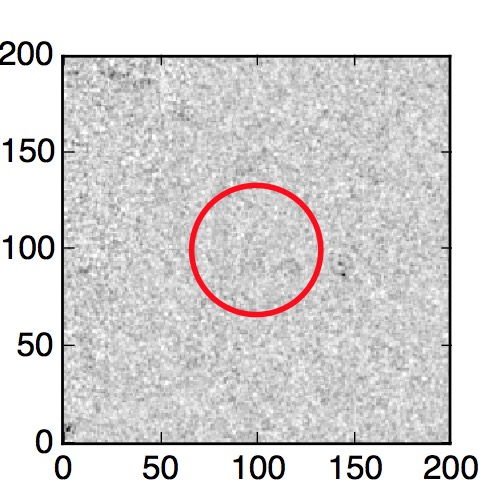 The red circle in the various panels is 1" in radius. The images are 6"x6".