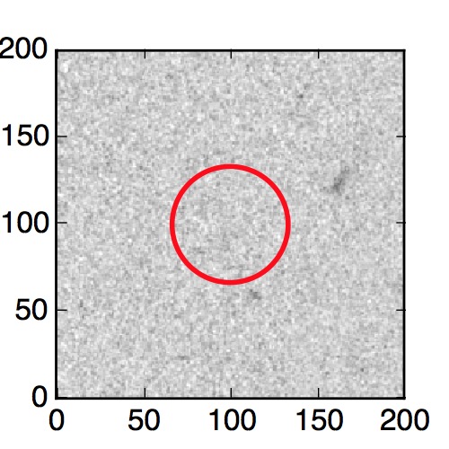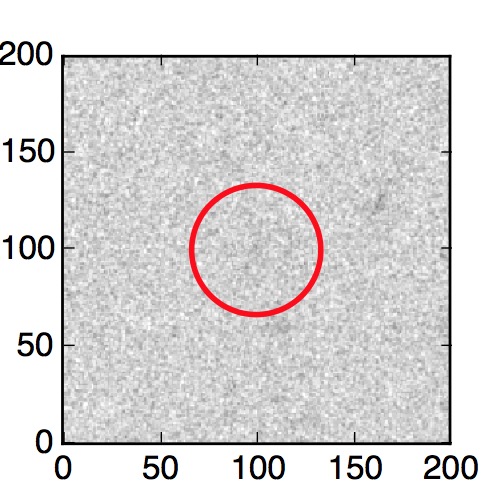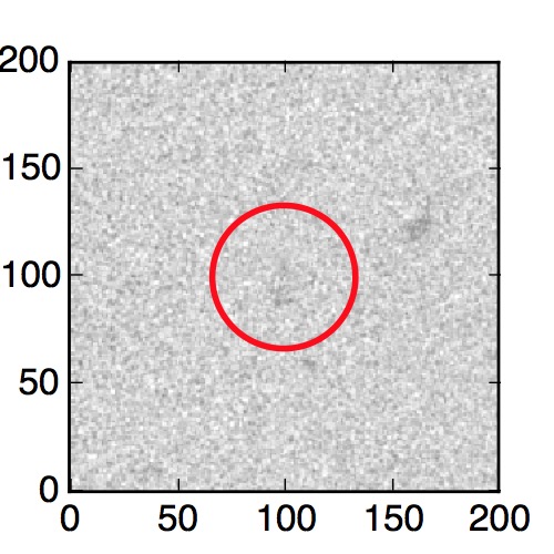 The red circle in the various panels is 1" in radius. The images are 6"x6".