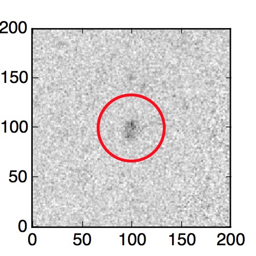 The red circle in the various panels is 1" in radius. The images are 6"x6".