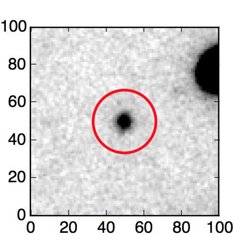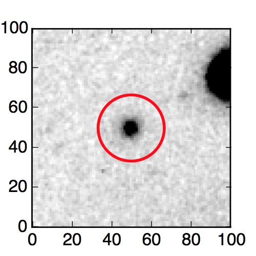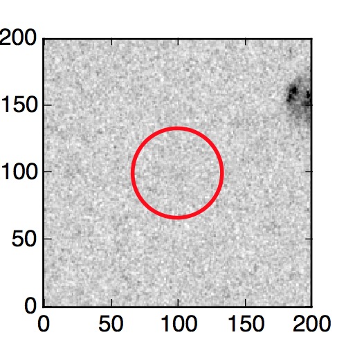 The red circle in the various panels is 1" in radius. The images are 6"x6".