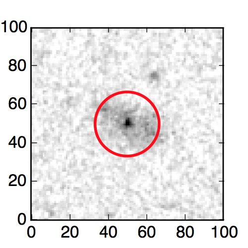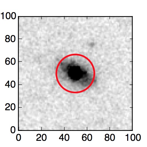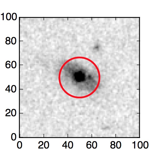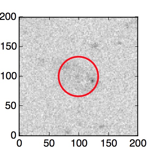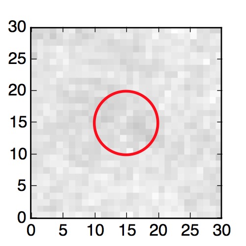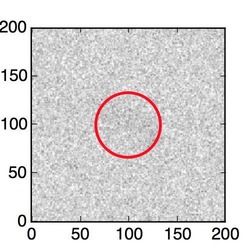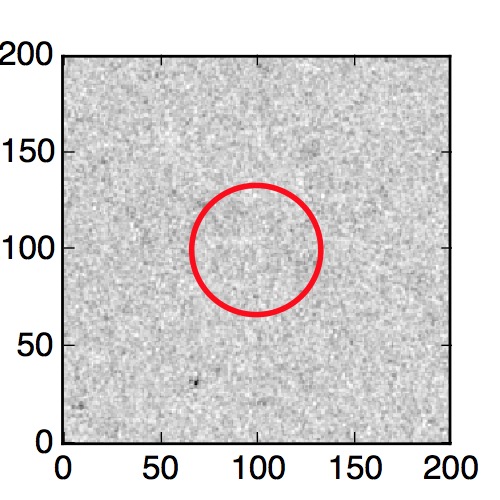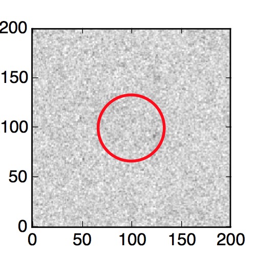 The red circle in the various panels is 1" in radius. The images are 6"x6".