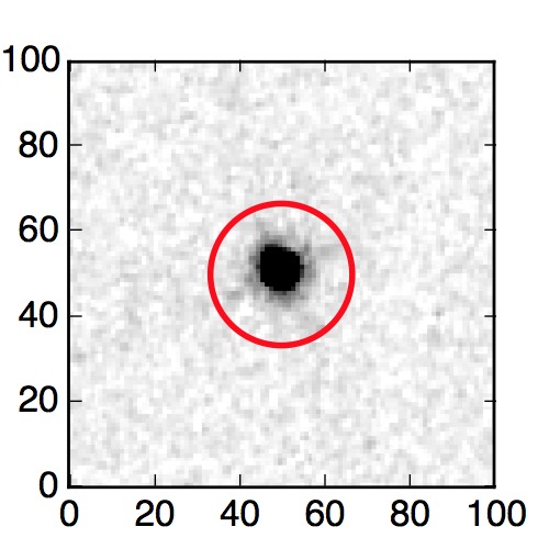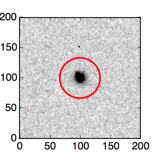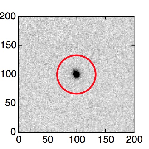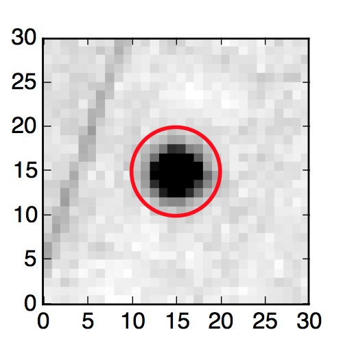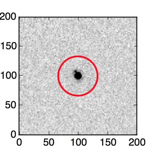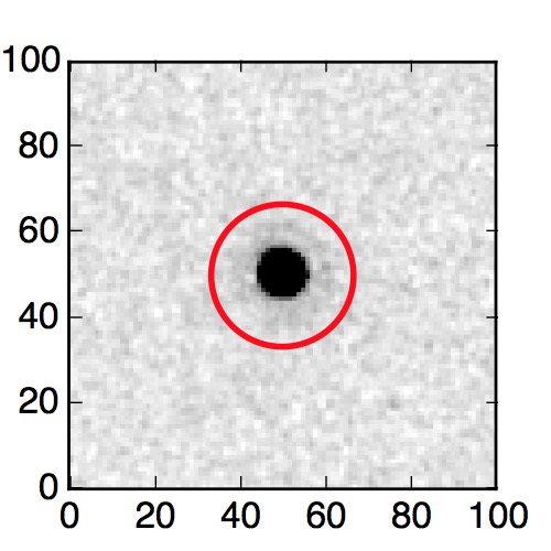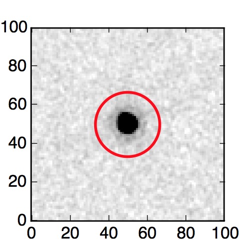 The red circle in the various panels is 1" in radius. The images are 6"x6".