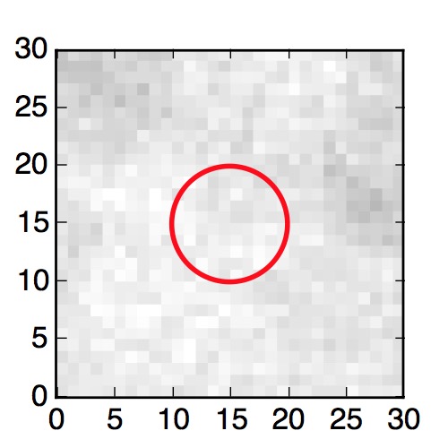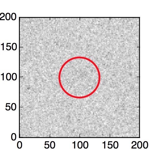 The red circle in the various panels is 1" in radius. The images are 6"x6".