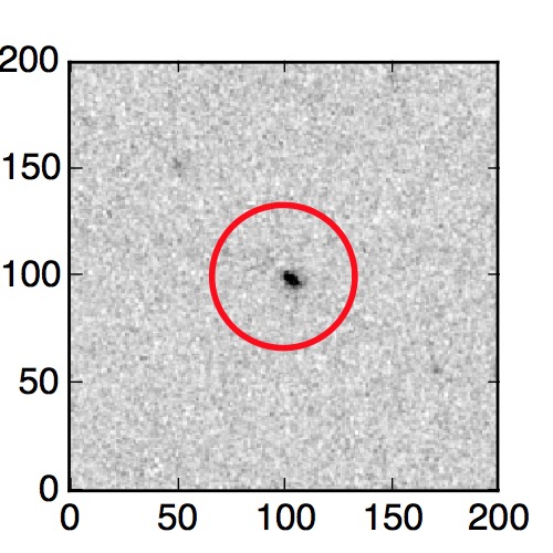 The red circle in the various panels is 1" in radius. The images are 6"x6".