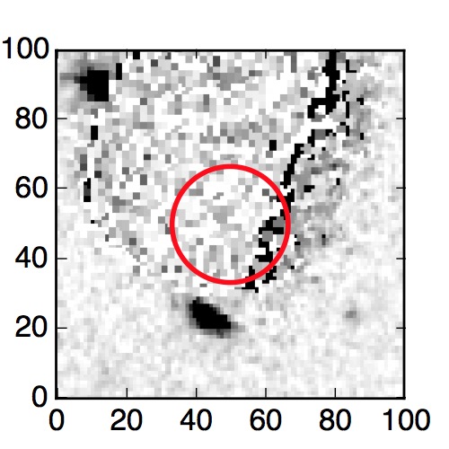 The red circle in the various panels is 1" in radius. The images are 6"x6".