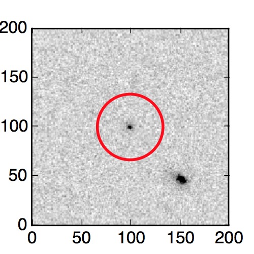 The red circle in the various panels is 1" in radius. The images are 6"x6".